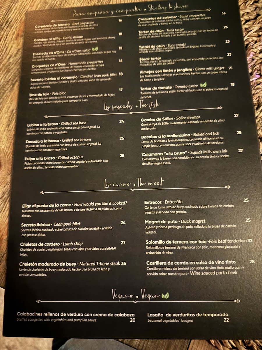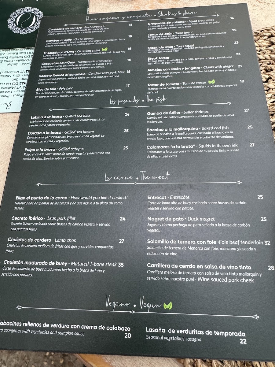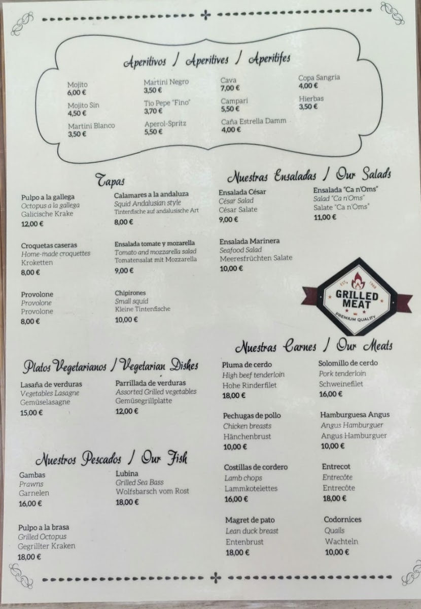 Nestled in the heart of Petra, Restaurant Ca n'Oms offers a Mediterranean dining experience that captivates with authentic flavors and a warm, inviting atmosphere. The menu shines with expertly grilled meats, from tender beef tenderloin topped with foie gras to perfectly cooked lamb chops, each dish embodying a rich depth of seasoning and charred perfection. Seafood lovers delight in the fresh, delicate sea bass and the unforgettable squid ink croquettes, which burst with oceanic flavor. Starters like olives with aioli and creamy appetizers set the stage for a well-balanced meal. The house tiramisu offers a sweet, lingering finish that guests praise. Pairing these dishes with carefully selected local wines elevates the experience, while the attentive staff ensures every detail enhances the meal. Ca n’Oms is a celebration of Mediterranean cuisine, where every bite reflects genuine passion and culinary finesse.